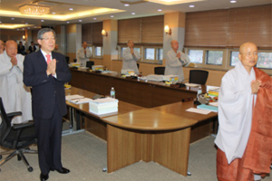 조계종 총무원장 자승스님은 지난 7일 원불교 종단장으로 진행되고 있는 홍석현(중앙일보 회장), 홍라희(리움박물관 관장)의 모친인 김윤남 여사의 빈소인 서울삼성병원 분향소를 찾아 ..