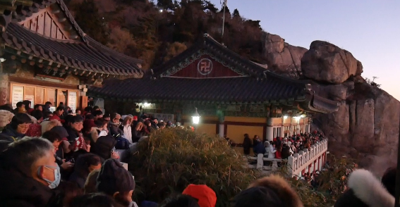 경남 남해 보리암은 수천 명의 새해맞이 인파가 몰렸다고 2일 밝혔다.2018년 새해 첫날 3,000명분 떡국을 준비했지만, 보리암을 찾은 태반이 맛을 못 볼 정도로 예년에 비해 많은 인파가..