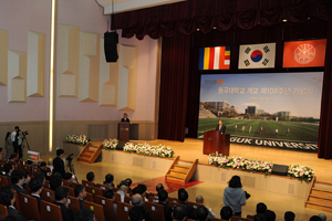 동국대가 개교108돌을 맞아 7일(화) 오전 11시 본관 중강당에서 개교기념식을 거행했다. 진도여객선 침몰사고와 관련, 고 최혜정 동문(역사교육과 졸)을 비롯한 희생자들의 넋을 위로하..