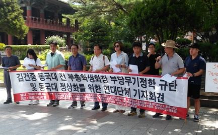 갈등이 계속되고 있는 동국대 사태와 관련 한태식 총장의 사퇴와 조계종 총무원장 자승 스님의 사과를 촉구하는 목소리가 터져나왔다. 이와 함께 교육부에 대해서는 종합감사하라고..