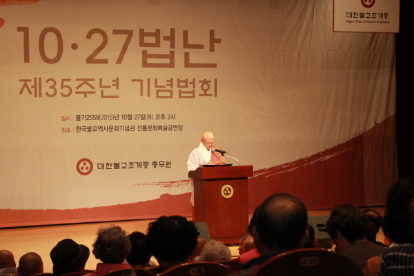 대한불교조계종 총무원(총무원장 자승스님)은 10월 27일(화) 오후2시 한국불교역사문화기념관 지하2층 전통문화예술공연장에서 ‘10.27법난 35주년 기념법회’를 봉행했다. 10.27법난은 1980..
