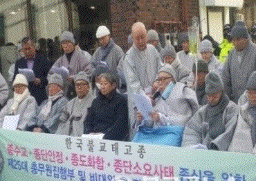 총무원장 퇴진을 둘러싸고 내분 중인 태고종 총무원 측과 반대파 비상대책위원회(비대위) 측이 물리적 충돌을 또 다시 빚고 있다. 11일 오전 2시경 서울 종로구 태고종 총무원 사무실..