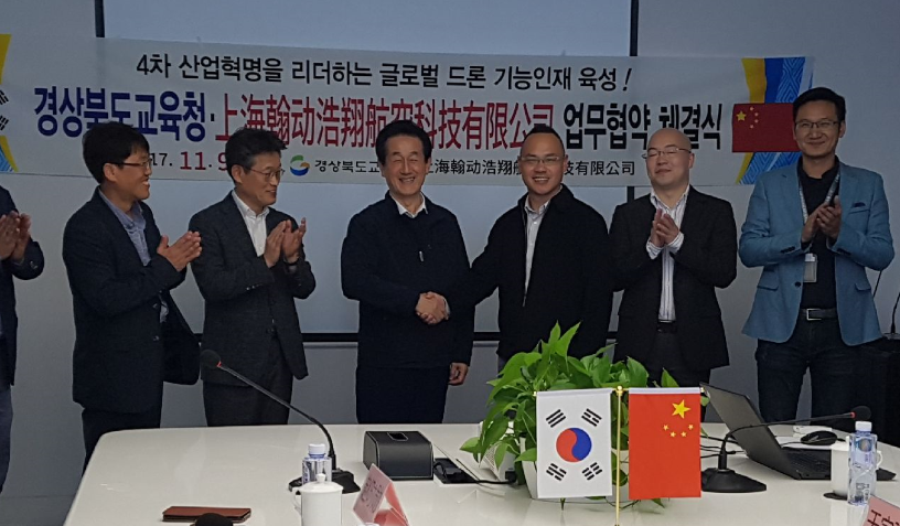 경북교육청은 중국 현지 상해한동호상항공과기유한공사 및 상해동고항공과기유한공사와 드론 기술 정보 공유를 위한 산학업무협약을 체결했다고 10일 밝혔다.이를 통해 경북교육청..